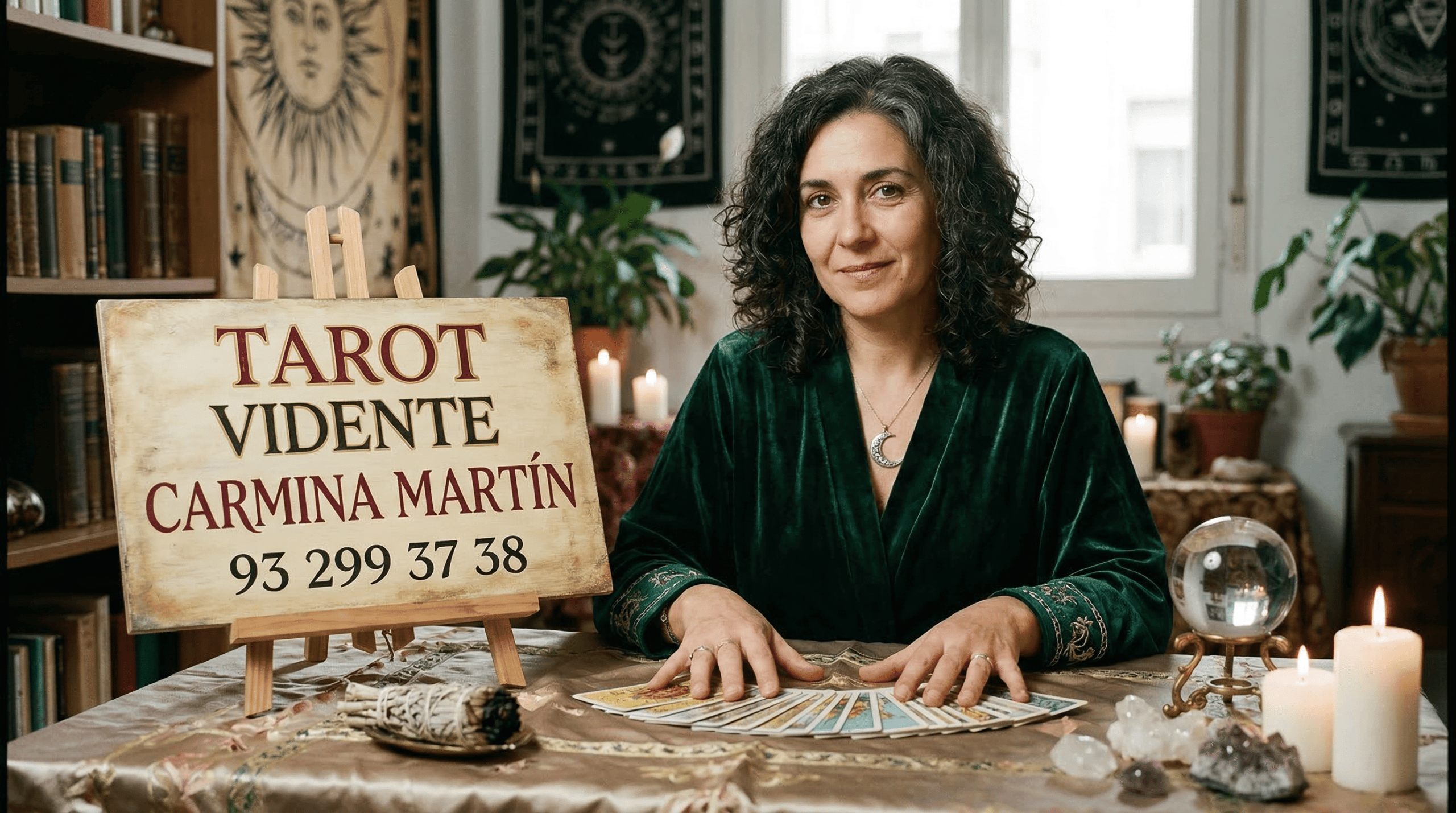 Carmina Martín, médium tarotista, guiada por mi intuición y mi conexión con el mundo espiritual. A través del tarot y la energía, te ayudo a descubrir respuestas, sanar dudas y encontrar luz en tu camino. Consulta profunda, sincera y privada.